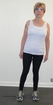 Bring your weight back to center, and this time shift all your weight onto your right foot, while keeping the left foot just barely touching the floor. How far does your torso shift before your foot begins to lift off the floor?